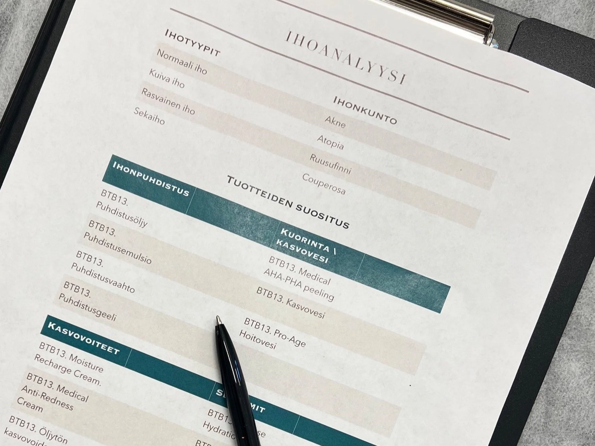 Tutustu ihoosi tarkemmin - koe kasvojen ihonanalyysi ja saat yksilöllisen hoitosuosituksen juuri sinun ihollesi. Löydä parhaat hoitotuotteet ja -menetelmät, jotka auttavat sinua saavuttamaan kauniin ja terveen ihon. Anna ihosi loistaa ja tule kokemaan kasvojen ihonanalyysi!